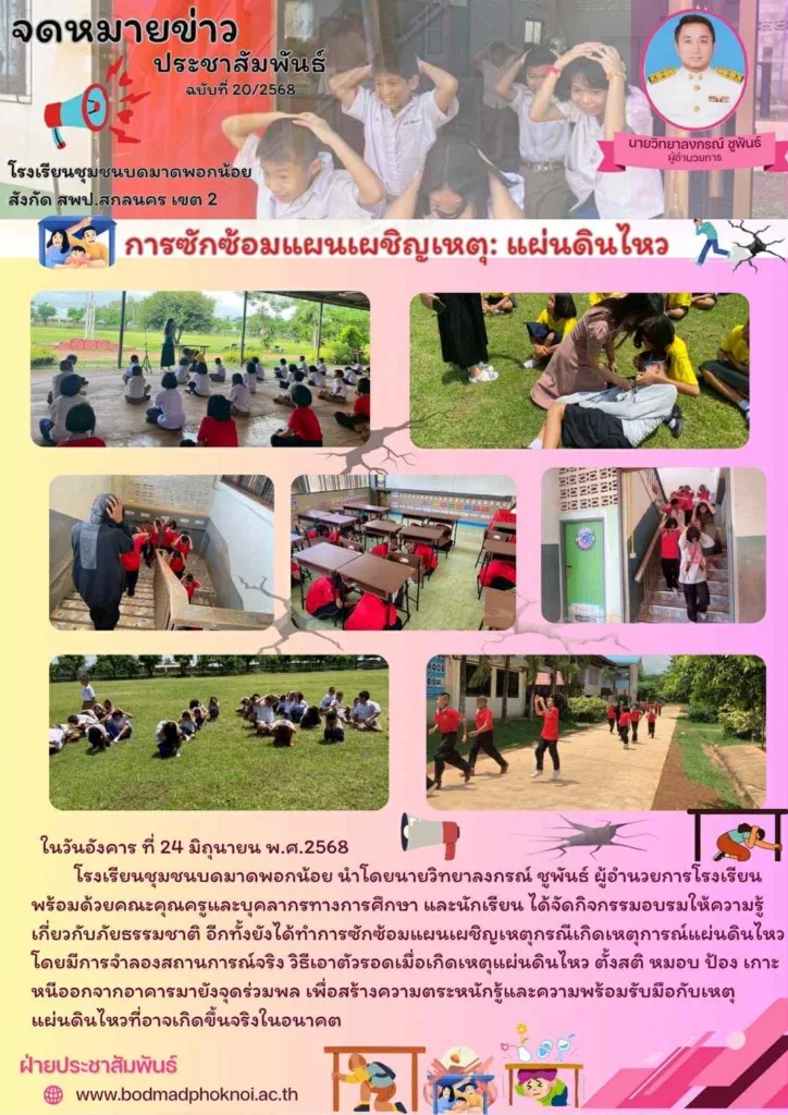 วันพฤหัสบดี ที่ ๒๔ กรกฎาคม ๒๕๖๘ สภาเด็กและเยาวชนเทศบาลตำบลพอกน้อย ได้ดำเนินการจัดอบรมโครงการส่งเสริมทักษะชีวิตและทักษะอาชีพการทำพรมเช็ดเท้าด้วยเศษผ้า ณ โรงเรียนชุมชนบดมาดพอกน้อย โดยได้รับเกียรติจากท่านประธานเสน่ห์ วจีสิงห์ นายกเทศมนตรีตำบลพอกน้อย ที่ได้ให้เกียรติมาเป็นประธานในพิธีเปิดในครั้งนี้ ทั้งนี้มีจำนวนนักเรียนที่เข้าร่วมโครงการฯ จำนวน ๕ โรงเรียน